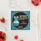Belles serviettes en papier jetable personnalisées en parties scintillant bleu turquoise et couleurs dorées. Customisez-les en ajoutant votre nom (ou société) et le texte annuel de la fête du dîner ou autre. Grand ornement bleu avec arc.