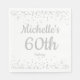 Elégant et moderne blanc avec parties scintillant argent femme 60e anniversaire de fête serviettes de papier personnalisées avec un nom et un âge. Tout le texte est personnalisable.