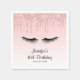 Serviettes en papier de fête d'anniversaire avec un design moderne, tendance, (faux) brillant. Pour ceux qui souhaitent transmettre un air de classe et d'élégance. Conçu avec un arrière - plan qui a une image de parties scintillant scintillante, rose, dégoulinante (fausse) le long du sommet. Le reste de l'arrière - plan est un délicat dégradé de couleur rose pastel. Une illustration d'une paire de cils noirs complète le design.