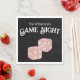 Ces serviettes personnalisées de fête ont un thème de Game Night. Une image de jeu de dés est imprimée au centre dans une parties scintillant rose sur un arrière - plan noir. L'expression "Game Night" est imprimée au-dessus des dés avec un exemple de nom de famille. Vous pouvez personnaliser les serviettes pour inclure votre propre nom ou texte personnalisé.