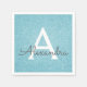 Parties scintillant turquoise Aqua Blue Faux et serviettes de fête d'anniversaire Monogram élégant étincelant. Cette fête d'anniversaire, Fête des mariées, Mariage, Baby shower Napkin peut être customisé pour inclure votre nom initial et prénom.