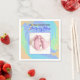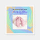 Cette serviette en papier présente un design de célébration bébé nouveau-né avec une tourbée colorée de violet, pêche, vert et bleu. Vous pouvez également remplacer la photo de bébé pieds de l'espace réservé par une photo carré de votre bébé ou la laisser telle quelle. Remplissez les champs d'informations personnelles, supprimez le texte et/ou cliquez sur personnaliser pour sélectionner la couleur, la taille et le style de votre choix.