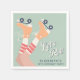 serviettes de fête d'anniversaire à la sauge verte patinée avec une illustration rétro de patins à rouleaux orange pastel sur une fille portant des chaussettes à tube rayé rouge et blanc et "Let's Roll" en écriture blanche. Ajoutez son nom de typographie bleu turquoise foncé.