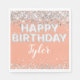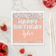 Serviettes de fête d'anniversaire à la pêche et à l'argent pour une fête amusante avec un look classique moderne avec parties scintillant et ballons en feuille sur des serviettes en papier.