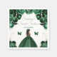 Cette serviette élégante et glamour en sweet sixteen présente une belle princesse à la peau foncée dans une robe de boule vert foncé. Le texte combine écriture manuscrite et polices sans serif modernes pour un look élégant et sophistiqué. Les arrangements floraux, papillons et confettis argentés créent un mélange parfait de rustique et de chic. Graphiques par www.etsy.com/uk/shop/SunflowerDayLove