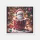 Une image charmante et fantaisiste représentant un Père Noël miniature niché à l'intérieur d'une tasse géante et vapeur de cacao chaud. La tasse est ornée de délicats flocons de neige et dégouline de bonté crémeuse. Père Noël, avec ses joues roses et ses yeux scintillants, se détache de la chaleur, entourée de la douce lueur des lumières de Noël et des décorations festives.