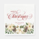 Personalized Christmas White Poinsettia Napkins. Beautiful Christmas Typography and Poinsettia Christmas floral arrangement.