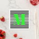 Personnaliser monogramme initial noir blanc rayures néon papier vert et tissu serviettes