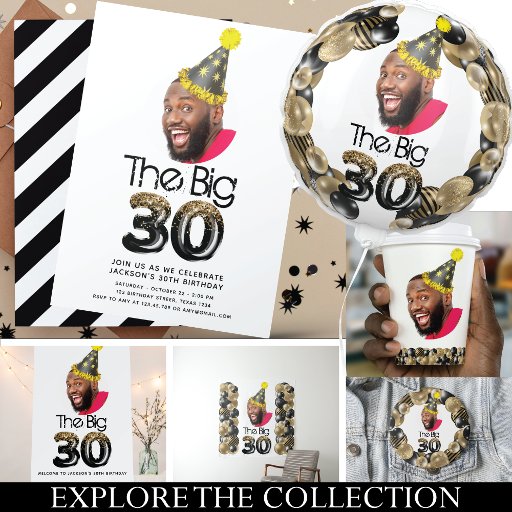 Simple moderne 30e anniversaire Photo Black Gold design. Vous pouvez changer la photo facilement, et si vous allez sur Cliquez pour customiser plus loin, vous pouvez déplacer le Casquette d'anniversaire comme il fonctionne pour vous. Les produits correspondants se trouvent dans la collection 30th Birthday.