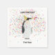 Une jolie illustration d'une fête de pingouins et de s'amuser ! Un pingouin portant un casquette de fête et faisant exploser la corne de fête avec des confettis qui pleuvent dessus. Que les célébrations commencent ! Parfait pour tous ceux qui aiment les illustrations d'animaux drôles. Idéal serviettes en papier de fête d'anniversaire. Customisez l'occasion et le nom et faites-le vous-même.