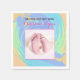 Cette serviette en papier présente un design de célébration bébé nouveau-né avec une tourbée colorée de violet, pêche, vert et bleu. Vous pouvez également remplacer la photo de bébé pieds de l'espace réservé par une photo carré de votre bébé ou la laisser telle quelle. Remplissez les champs d'informations personnelles, supprimez le texte et/ou cliquez sur personnaliser pour sélectionner la couleur, la taille et le style de votre choix.