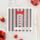 Ce design amusant, convient à de nombreuses occasions. Pour un événement décontracté, ces rayures rouges, blanches et noires sur un arrière - plan gris foncé ont la bonne quantité de pizzaz. Pour compléter le look, il y a un arc rouge vif attaché cinq boutons métalliques argentés. La zone de texte, en bas, peut être personnalisée avec un nom, une occasion ou un événement spécial. Vous pouvez également supprimer le bloc de texte.