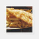 Une photographie en gros plan de Poisson et Frites imprimée sur des serviettes en papier jetables.