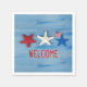 Poisson étoilé et drapeau américain sur bois bleu rustique.