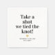 Des serviettes modernes "Prenez un coup de feu nous avons attaché le noeud!" pour une réception de mariage. Personnalisez en remplaçant les noms et la date des exemples.
