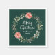 Cette serviette amusante et festive présente une couronne de poinsettias rouges et sainte sur un arrière - plan vert foncé. Le texte combine écriture manuscrite et polices serif pour un look élégant et sophistiqué. Il est parfait pour les fêtes de vacances, brunches, dîners, open house et plus encore.