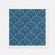Repeating geometric Art Deco pattern with teal lines and orange dots on a dark blue background, creating a symmetrical and elegant design.