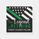 Cette conception comprend un drapeau de la police avec des rayures noires et blanches, ainsi qu'une fine bande bleue. Le texte "La légende prend sa retraite" se trouve au-dessus du nom personnalisable de l'officier, du shérif, du capitaine ou du chef de l'autorité qui prend sa retraite. Célébrez cette étape importante en style!