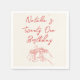 Comme vous voyez cette serviette de brunch d'anniversaire unique et élégant a un modèle bien conçu. Avec des lunettes à martini dessinées à la main rouge en mode "cheers" et un nom manuscrit fantaisiste. Tout sur arrière - plan crème. Vous pouvez facilement customiser en cliquant sur le bouton de personnalisation.