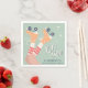 Patinage à rouleaux vert mignon serviettes de fête d'anniversaire avec une illustration d'inspiration rétro de patins à rouleaux orange pastel sur une fille portant des chaussettes à tube rayé rouge et "Let's Roll" dans un script style années 70. Ajoutez son nom de typographie bleu turquoise foncé.