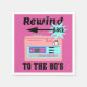 Rewind Back to the 80's, ce design présente un style rétro des années 1980 en rose et bleu avec un texte disant, "Rewind Back to the 80's".