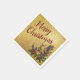 Rennes de Noël, guirlande verte aux ornements rouges et ruban rouge sur une fausse parties scintillant d'or arrière - plan 4.75x4.75 serviette en papier de cocktail.