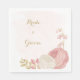 Serviette En Papier Romantique rose & fleurs blanches or