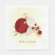 Serviette En Papier Romantique rouge foncé & fleurs blanches or