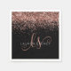Glam Rose Parties scintillant or élégante serviettes Monogram. Personnalisez facilement ce design chic et branché de serviettes avec une élégante parties scintillant brillante en or rose sur un arrière - plan noir. Le design comprend votre monogramme manuscrit avec de jolis tourbillons et votre nom.