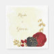 Serviette En Papier rouge foncé et fleurs noires or mariage