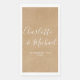 Conception mariage de signature rustique kraft élégante avec des noms de style signature, ces serviettes d'invités en papier moderne peuvent être personnalisées avec vos informations en lettrage blanc chic. Conçu par Thisisnotme©