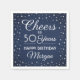Ajoutez une touche élégante et personnalisée aux décorations de fête d'anniversaire avec ces serviettes en papier bleu marine et blanc personnalisées. Design propose une calligraphie de script moderne personnalisable "Cheers to 50 Years" et des points de confetti en faux parties scintillant argent sur un arrière - plan bleu marine. Ce modèle est conçu pour fêter ses 50 ans, mais il est simple de le personnaliser pour une année différente. Joyeux anniversaire !