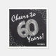 Noir et argent "Cheers to 60 Years" Anniversaire des serviettes de fête! Le design présente un tableau noir rustique avec un faux hélium soixante ballon en argent, un faux confetti en argent et un nom.