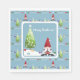 A Cute Blue Square Paper Party Napkin With Christmas Trees and Santa Gnomes