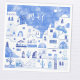 Une aquarelle moderne bleu et blanc d'Oia sur l'étonnante île grecque de Santorin. Art original de Nic Squirrell. Modifiez le texte pour personnaliser.