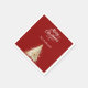 Un arrière - plan rouge et un texte blanc. Décoré d'un pin enneigé. Joyeux Noël est écrit avec un élégant script de style manuscrit. Personnalisez et ajoutez votre nom de famille