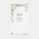 Une subtile serviette mariage couleur écru couleur sépia avec une délicate aquarelle peinte de fleurs de pivoines blanches et de vignes vertes à l'eucalyptus avec un script manuscrit moderne.