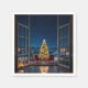 Un sapin de Noël joliment décoré se dresse fièrement devant les portes ouvertes de la France, dévoilant une vue à couper le souffle sur un paysage déneigé sous un ciel étoilé. Deux fauteuils confortables entourent l'arbre, invitant à la contemplation tranquille et à la fête. La lumière chaude des lumières de Noël et une bougie scintillante créent une atmosphère de paix et de tranquillité.