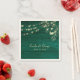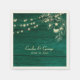 Elégante, moderne, rustique grange en bois vert mariage personnalisé serviettes avec dentelle dorée florale, lampes à cordes et script de calligraphie tendance.