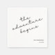Créez un cocktail mariage mémorable avec ces serviettes personnalisées avec l'expression "The Adventure Begins" en écriture minimaliste. Ces serviettes noires et blanches sont parfaites pour ajouter une touche d'élégance à votre journée spéciale. Customisez avec vos noms et votre date de mariage pour les rendre vraiment uniques. Ces serviettes sont un bel ajout à tout décor de réception de mariage.