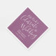 Texte simple et moderne manger, boire & célébrer le mariage des serviettes. Le texte typographique dit : Mange, bois & fête le mariage de puis ajouter les noms de ta mariée et de son époux et la date du mariage. D'autres couleurs de prune rose mauve-mauve foncé assorties avec le script blanc et les éléments cardiaques et d'autres couleurs sont disponibles dans ce design. © Design original par www.mylittleedenweddings.com sur zazzle.