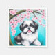 Serviette En Papier Shih Tzu en fleurs de cerisiers orientaux