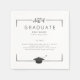 Bordure d'argent avec un script "classe de" fantaisiste couplé avec une illustration casquette de graduation sur le fond et votre nom et des faits amusants au milieu.