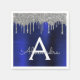 Argent et Marine Blue Faux Parties scintillant à étincelles métalliques brossé Monogramme en métal Nom et serviettes de la partie papier initiale. Cela rend le cadeau parfait pour 16 ans, mariage, douche nuptiale, anniversaire, baby shower ou bachelorette pour quelqu'un qui aime le luxe glam et les styles chic.