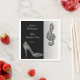 Serviettes personnalisées et élégantes pour fêtes d'anniversaire avec éclat et glamour.Avec un magnifique strass d'image imprimé, parties scintillant, paillettes, diamants bijoux scintillants talons hauts talons stilettos chaussures de mode, et brillance argentée et noir treble fente sur un arrière - plan noir et argent. Chic, classe, mignonette, girly, serviettes modernes pour anniversaire dans des couleurs / couleurs branchées et branchées. C'est un design féminin super, chic, élégant, sophistiqué, joli, girlie.