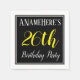 Cette conception simple et élégante de serviette en papier comporte un message comme "AnameHere’s 26th Birthday Party", avec le "26th" en texte jaune raffiné, dans une zone de carré de couleur noire avec un contour de bordure simple. Le nom peut être customisé. Des serviettes comme celles-ci pourraient être utilisées à une fête d'anniversaire pour quelqu'un qui fête son vingt-sixième anniversaire. [~Z0000150]