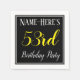 Cette conception simple et élégante de serviette en papier comporte un message comme "Name-Here’s 53rd Birthday Party", avec le "53rd" en texte jaune raffiné, dans une zone carré de couleur noire avec un contour de bordure simple. Un nom personnalisé peut être utilisé. Des serviettes comme celles-ci pourraient être utilisées à une fête d'anniversaire pour quelqu'un qui célèbre son cinquante-troisième anniversaire. [~Z0000150]