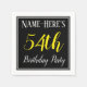 Cette conception simple et élégante de serviette en papier comporte un message comme "Name-Here’s 54th Birthday Party", avec le "54th" en texte jaune raffiné, dans une zone carré de couleur noire avec un contour de bordure simple. Le nom peut être customisé. Des serviettes comme celles-ci pourraient être utilisées à une fête d'anniversaire pour quelqu'un qui célèbre son cinquante-quatrième anniversaire. [~Z0000150]