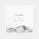 Ces serviettes simples en papier mariage de montagne à fleurs sont parfaites pour une réception de mariage en plein air. Le design minimaliste moderne comprend une montagne bleu marine d'aquarelle avec des fleurs sauvages de chute rose pâle. Personnalisez les serviettes avec les noms de la mariée et du marié. Ces serviettes peuvent être utilisées pour la réception de mariage, le dîner de répétition, la fête de fiançailles et plus encore!