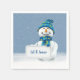 Un mignon bonhomme de neige en flocons tenant un panneau blanc dans la neige. Le texte peut être modifié.